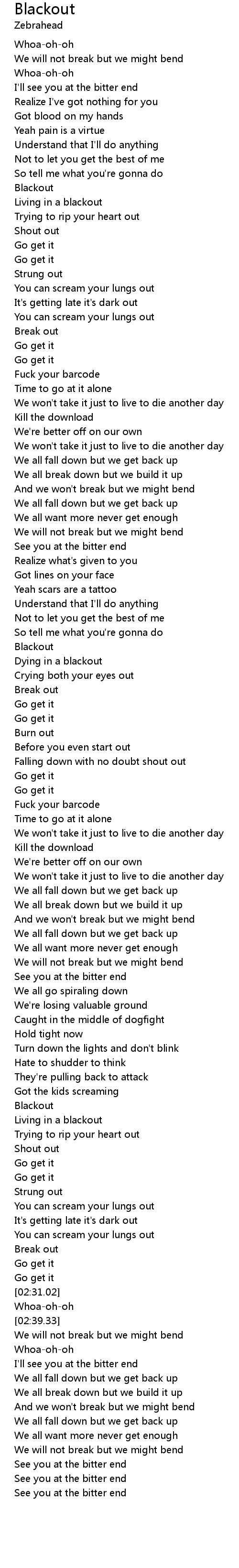 | [00:32.41] | Blackout |