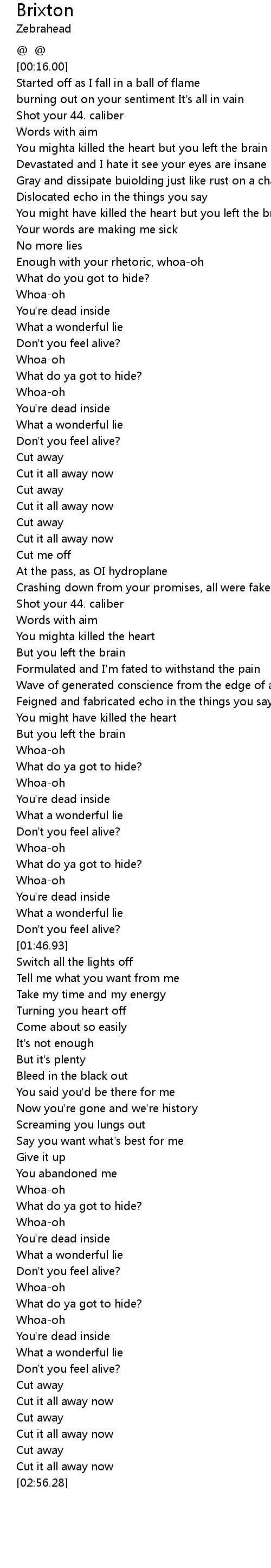 | [00:32.45] | You might have killed the heart but you left the brain |