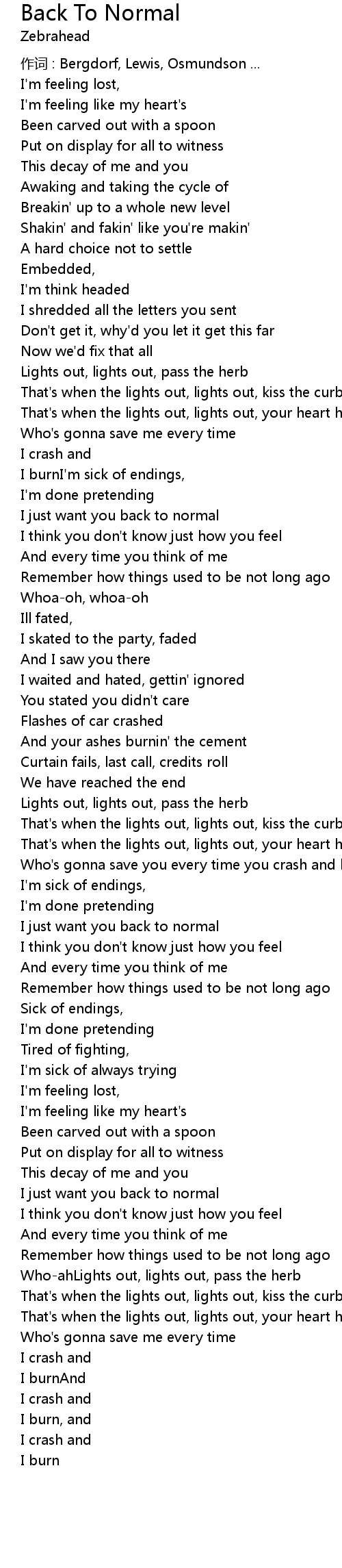 | 歌曲 | Back To Normal |