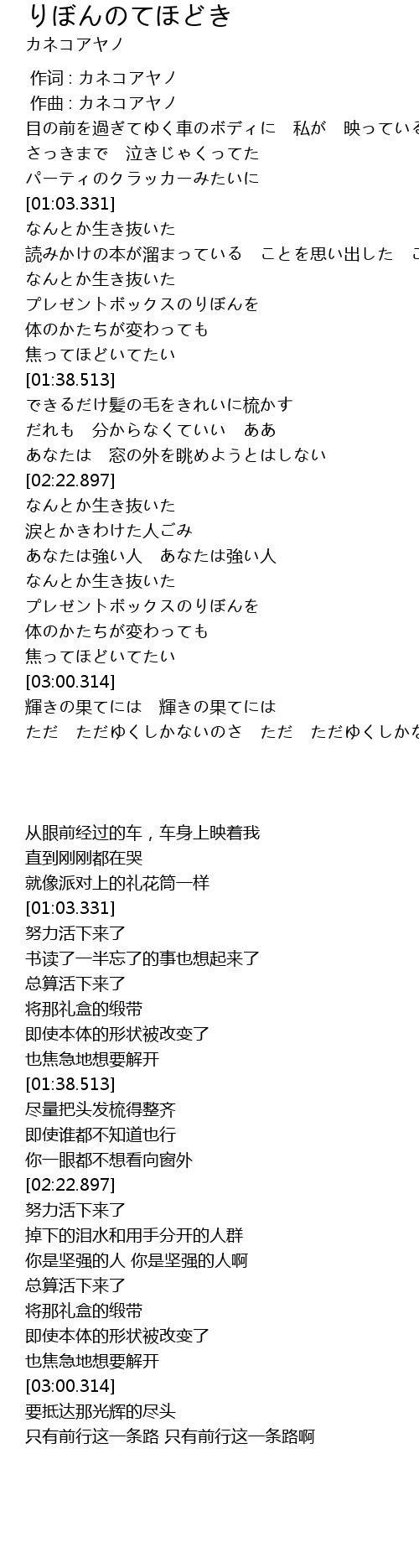 | [02:48.309] | プレゼントボックスのりぼんを |
