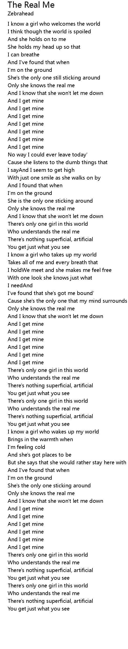 Only she knows the real me |