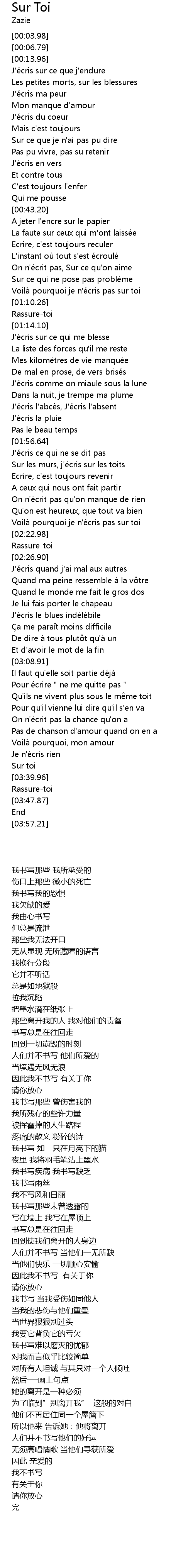 | [00:58.28] | On n'é crit pas, Sur ce qu' on aime |