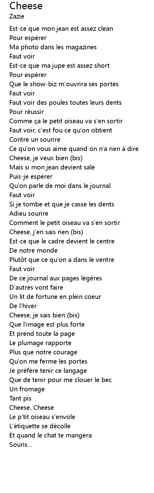 | Cheese, je sais bien (bis) | |