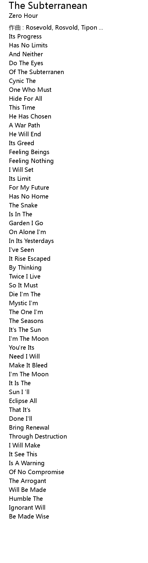 | 歌曲 | The Subterranean |