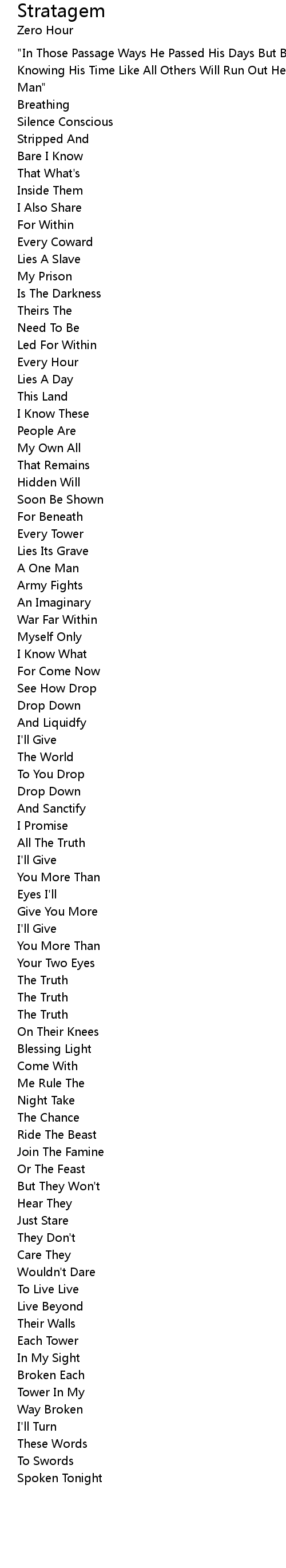 | "In Those Passage Ways He Passed His Days But Believed His Passive Ways Must End Knowing His Time Like All Others Will Run Out He Takes The Role Of The Desperate Man" | |