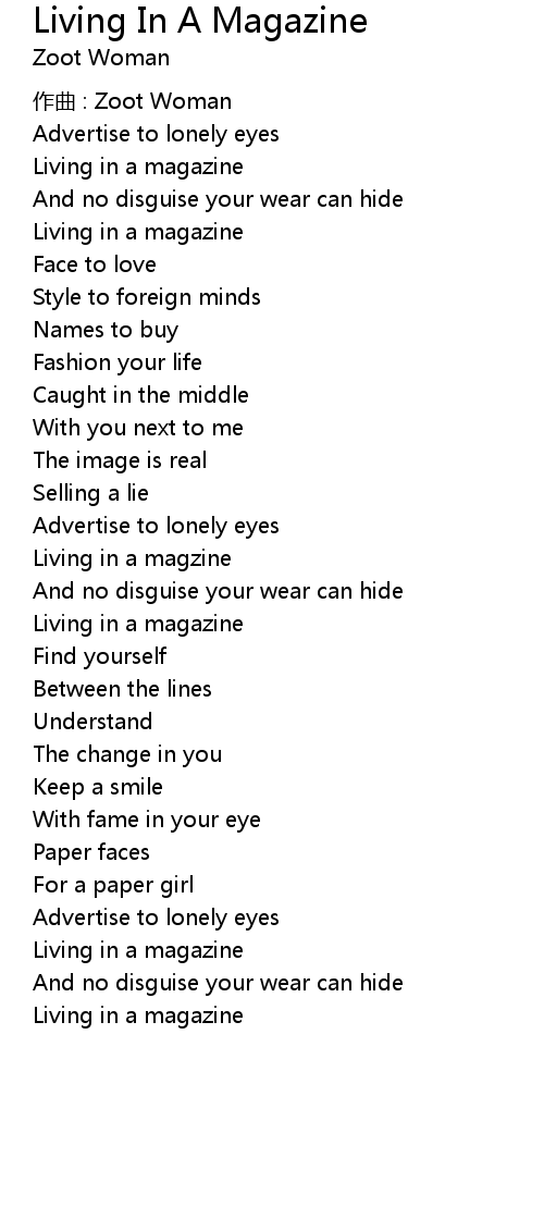 | 歌曲 | Living In A Magazine |
