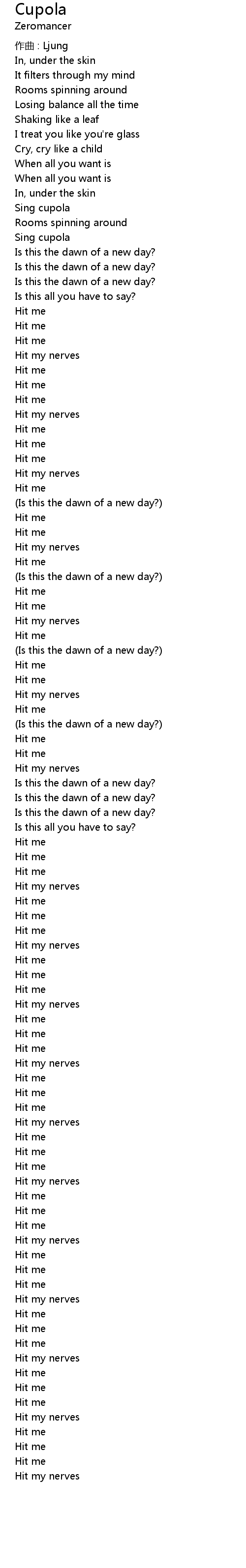 | 歌曲 | Cupola |