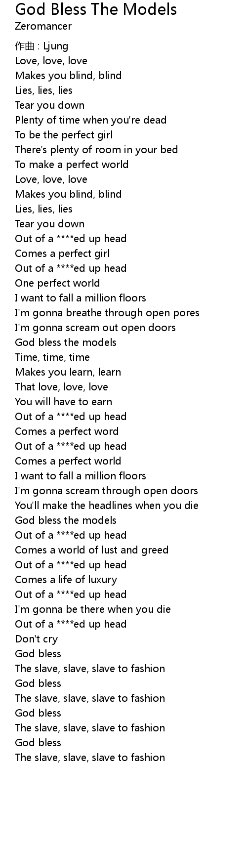 | 歌曲 | God Bless The Models |