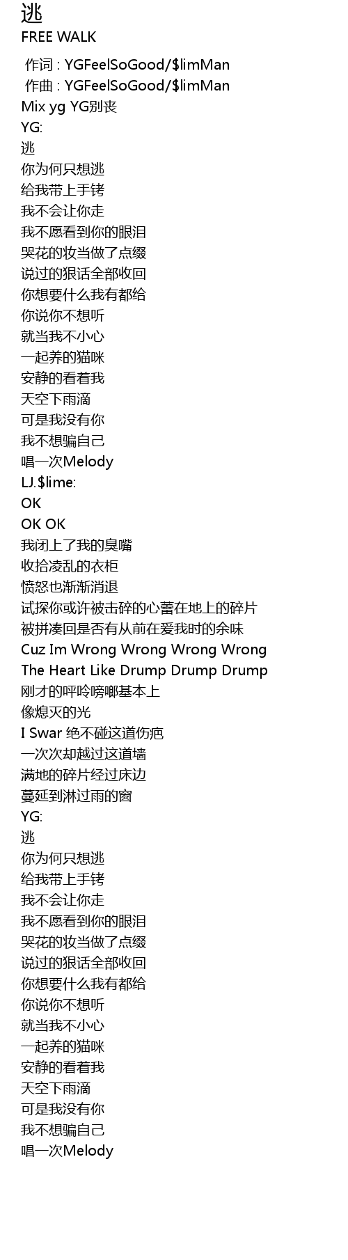 | [00:00.000] | 作词 : YGFeelSoGood/$limMan |
