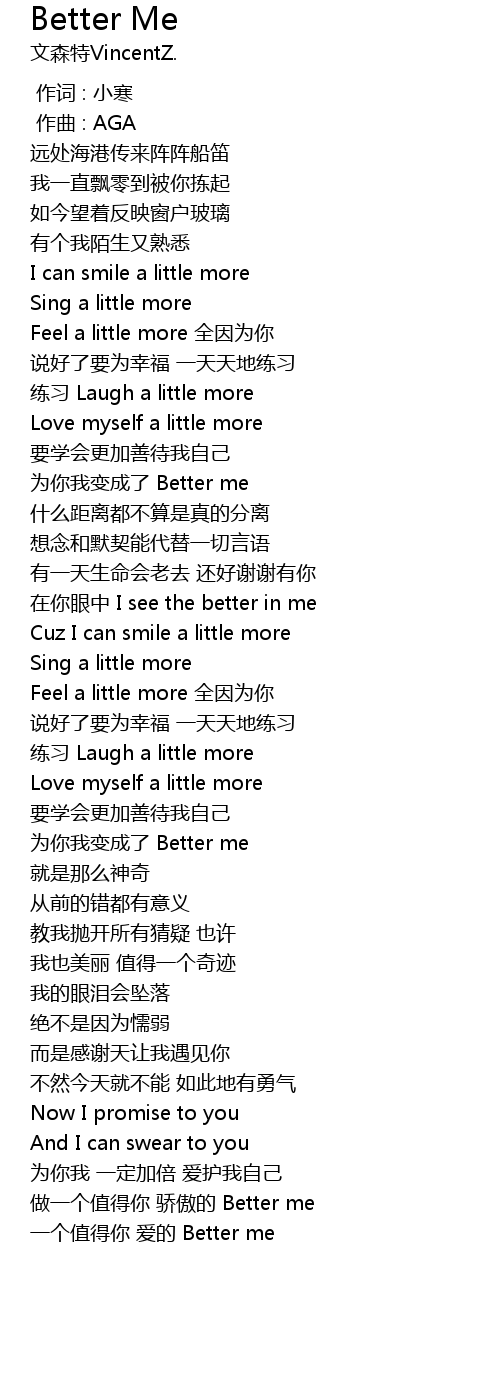 | [03:15.107] | 做一个值得你 骄傲的 Better me |