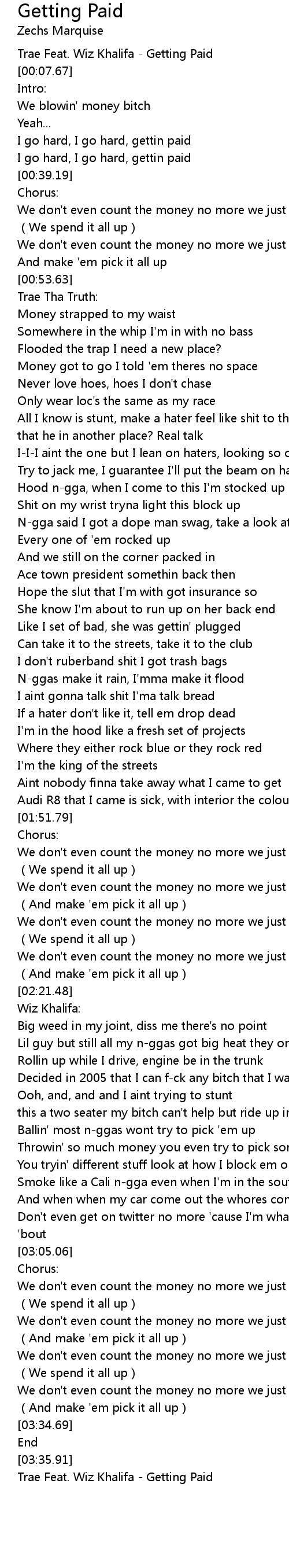 | [00:00.02] | Trae Feat. Wiz Khalifa Getting Paid |