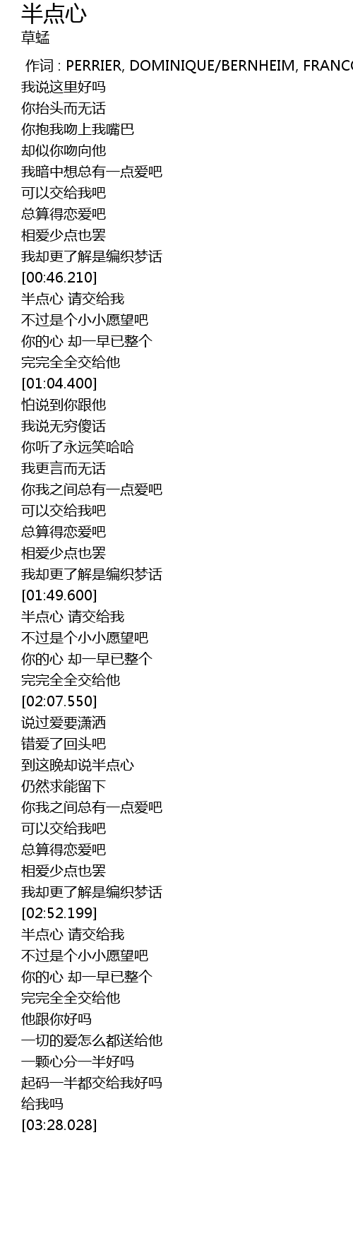 | [02:54.539] | 半点心 请交给我 |