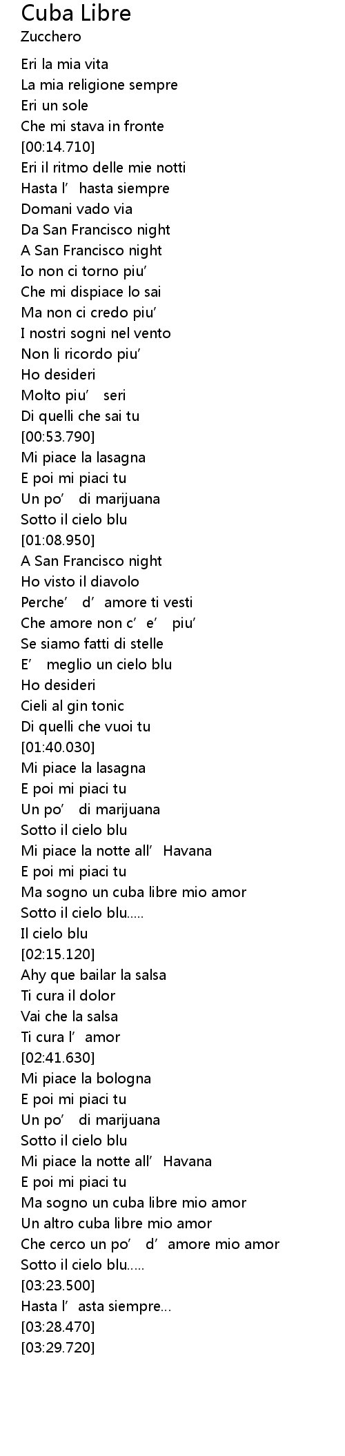 | [02:02.590] | Ma sogno un cuba libre mio amor |
