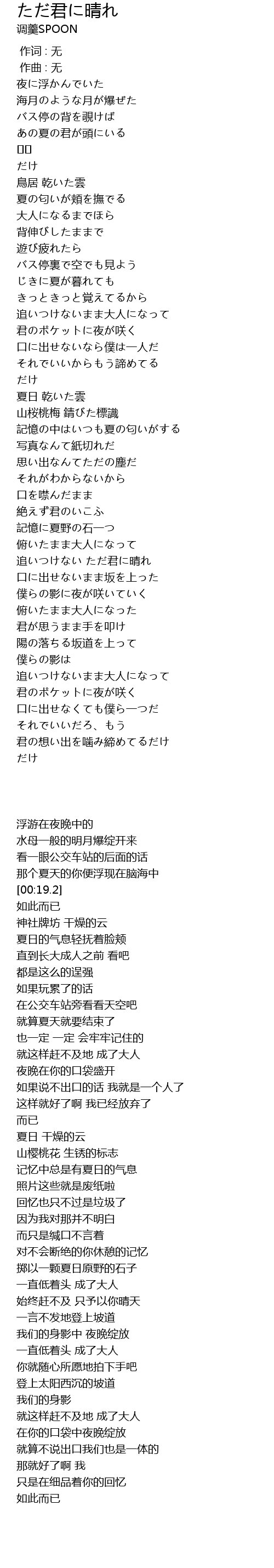 | [00:00.00] | 作词 : 无 |