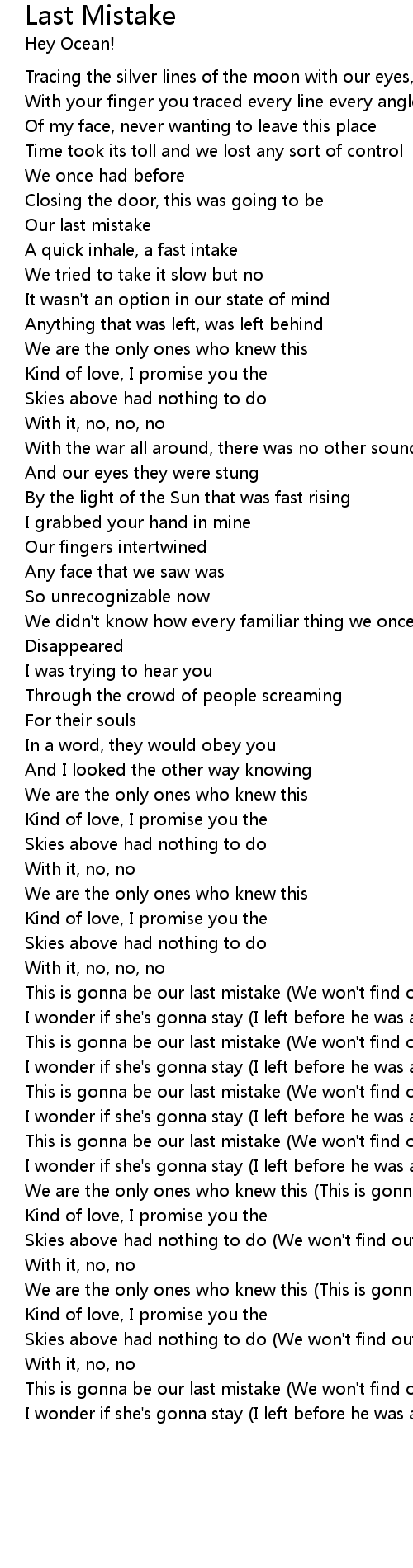 This is gonna be our last mistake (We won't find out till it's too late) |