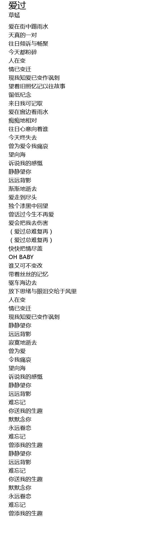 | [00:39.89] | 现我知爱已变作讽刺 |