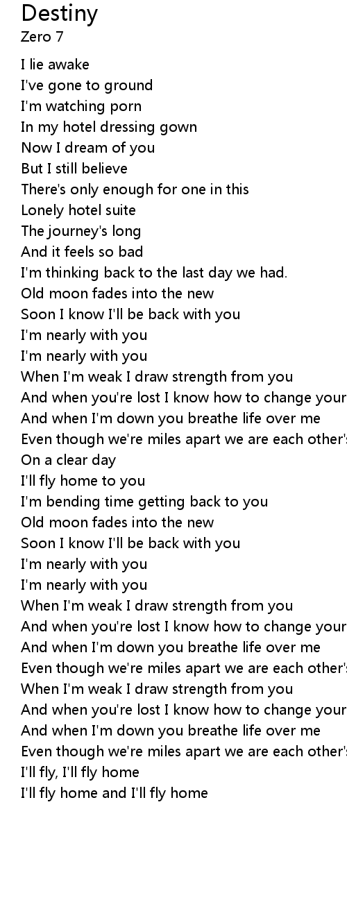 | [03:38.64] | Even though we're miles apart we are each other's destiny |
