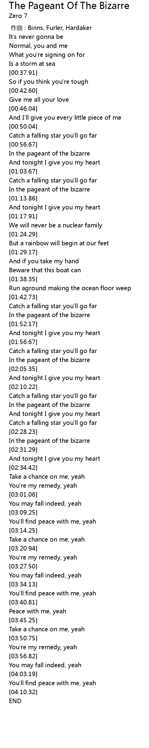 | [00:00.00] | 作曲 : Binns, Furler, Hardaker |
