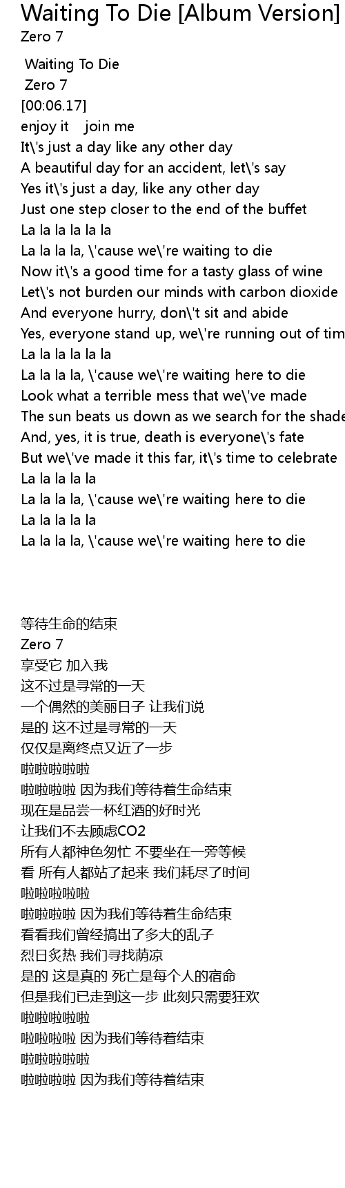 La la la la, \'cause we\'re waiting to die |