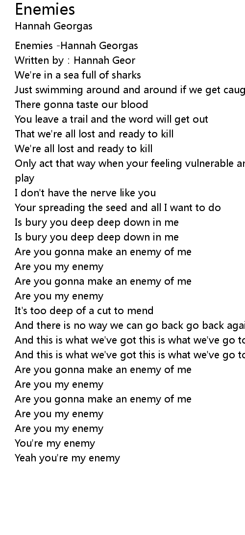 | [00:00.589] | Enemies Hannah Georgas |