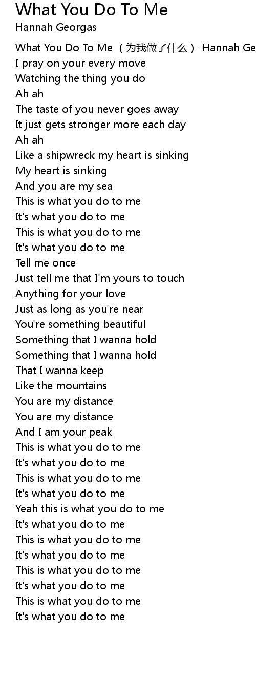 | [00:00.00] | What You Do To Me (为我做了什么)-Hannah Georgas |