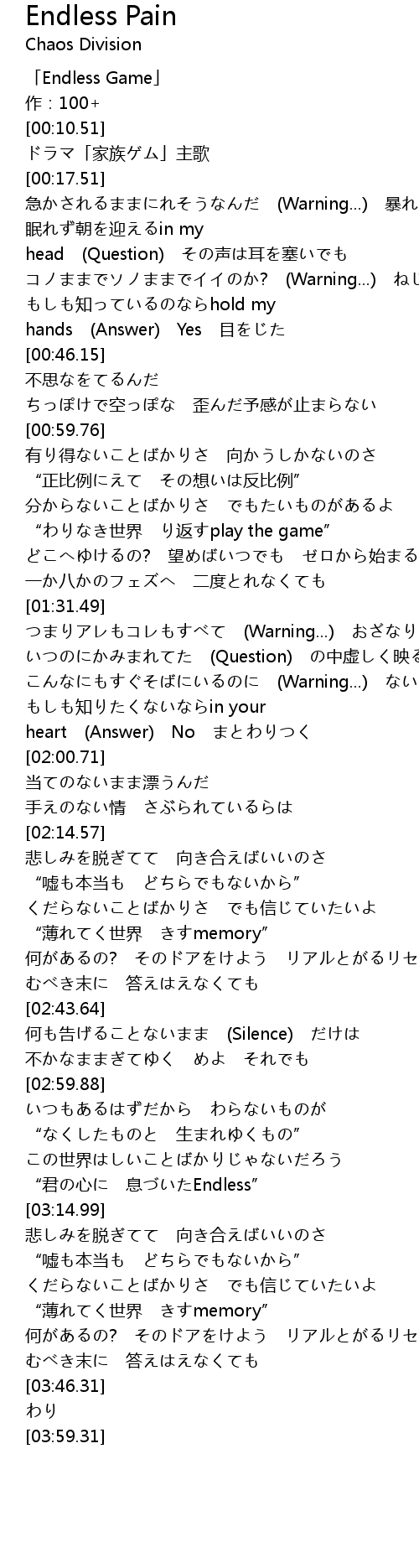 | [00:00.51] | 「Endless Game」 |