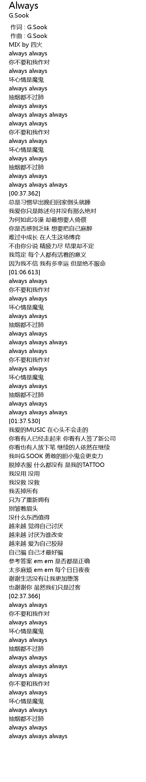 | [01:48.937] | 我叫G.SOOK 勇敢的胆小鬼会更卖力 |
