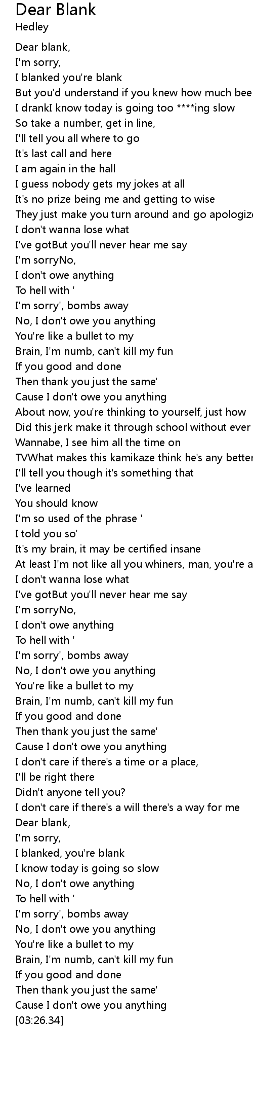 I blanked you're blank |