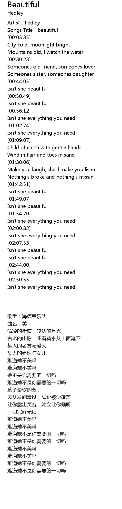 | [02:51.63] | 难道她不是你需要的一切吗 |