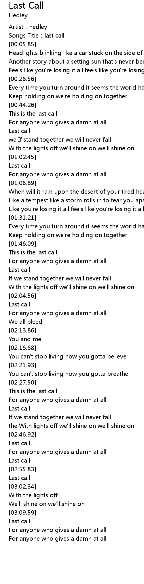 | [00:02.92] | Songs Title: last call |