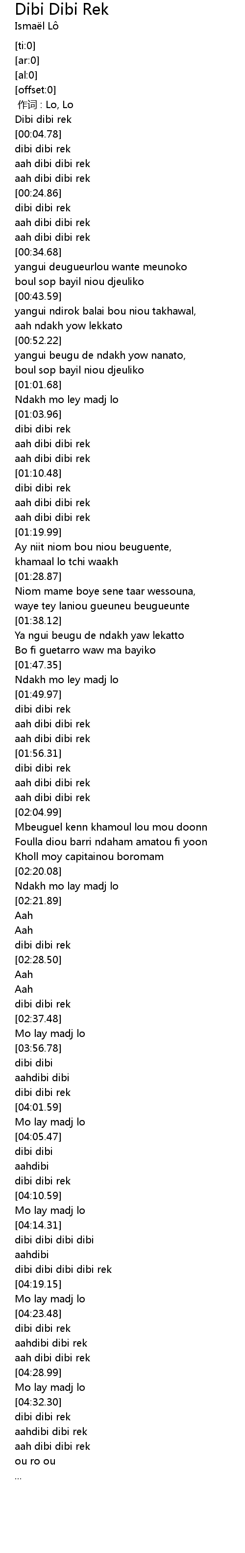 | [01:41.74] | Ya ngui beugu de ndakh yaw lekatto |