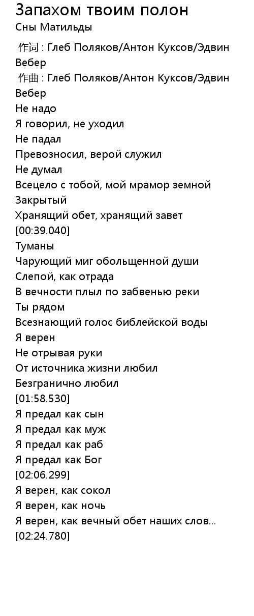 作词 : Глеб Поляков/Антон Куксов/Эдвин Вебер |