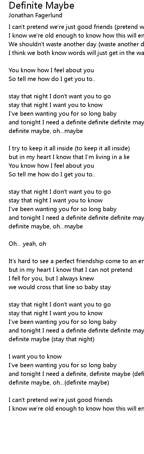 and tonight I need a definite definite definite maybe |