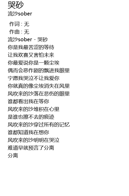 | [00:03.912] | 流沙sober - 哭砂 |