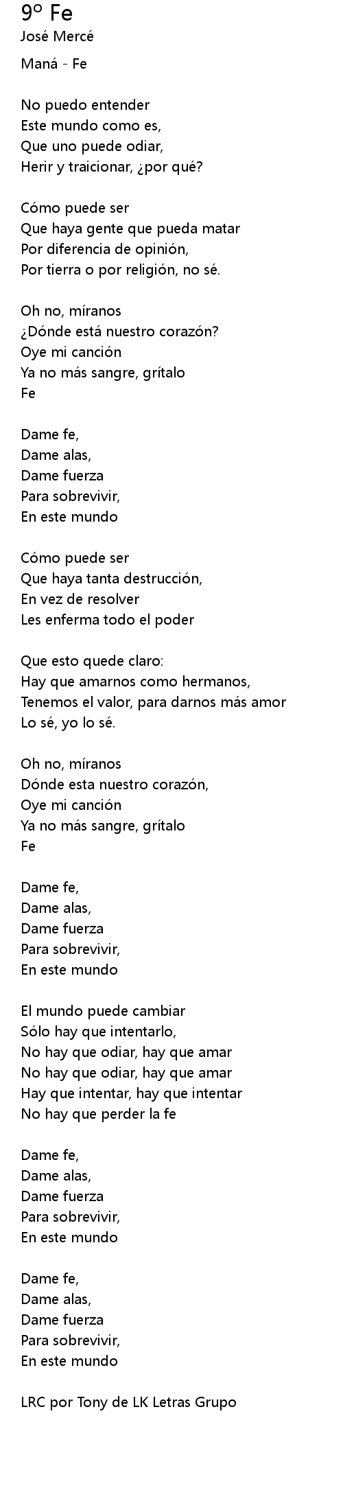 | LRC por Tony de LK Letras Grupo |