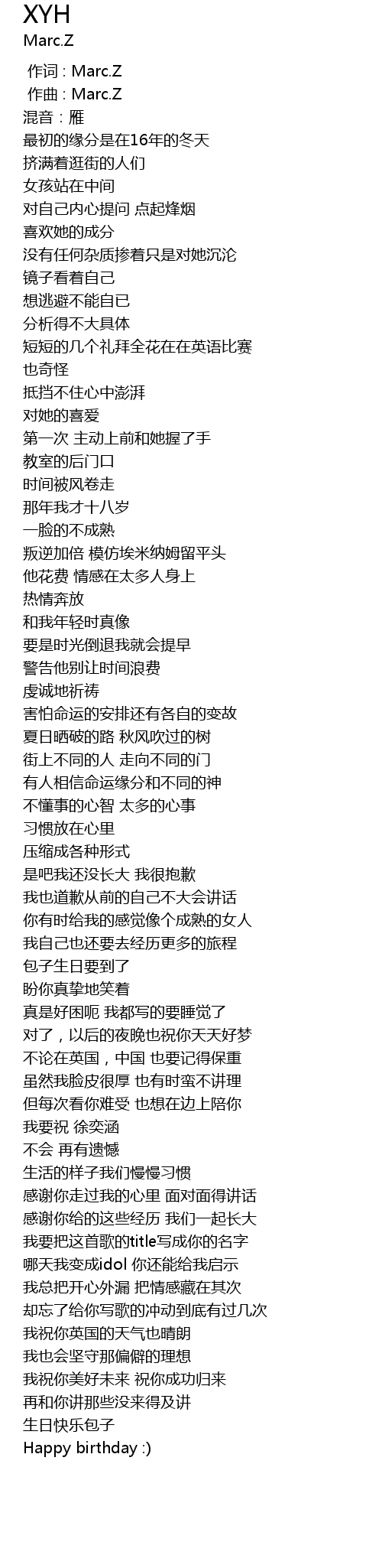 | [00:00.000] | 作词 : Marc.Z |