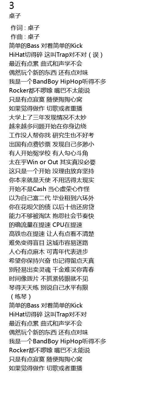 | [02:39.223] | 最近有点累 曲式和声学不会 |