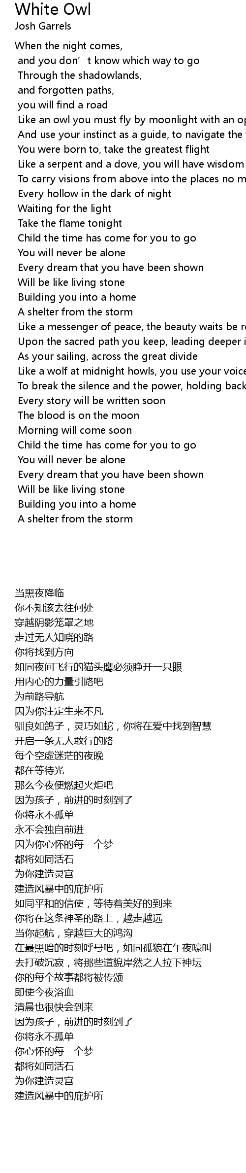 | [00:52.38] | 如同夜间飞行的猫头鹰必须睁开一只眼 |