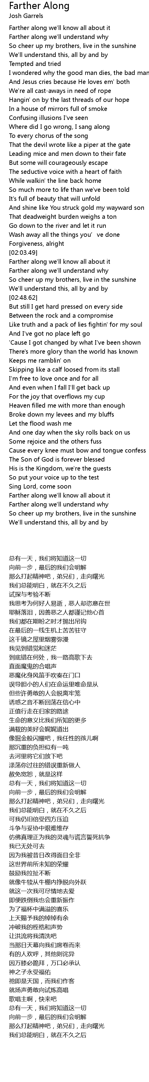 | 歌曲 | Farther Along |