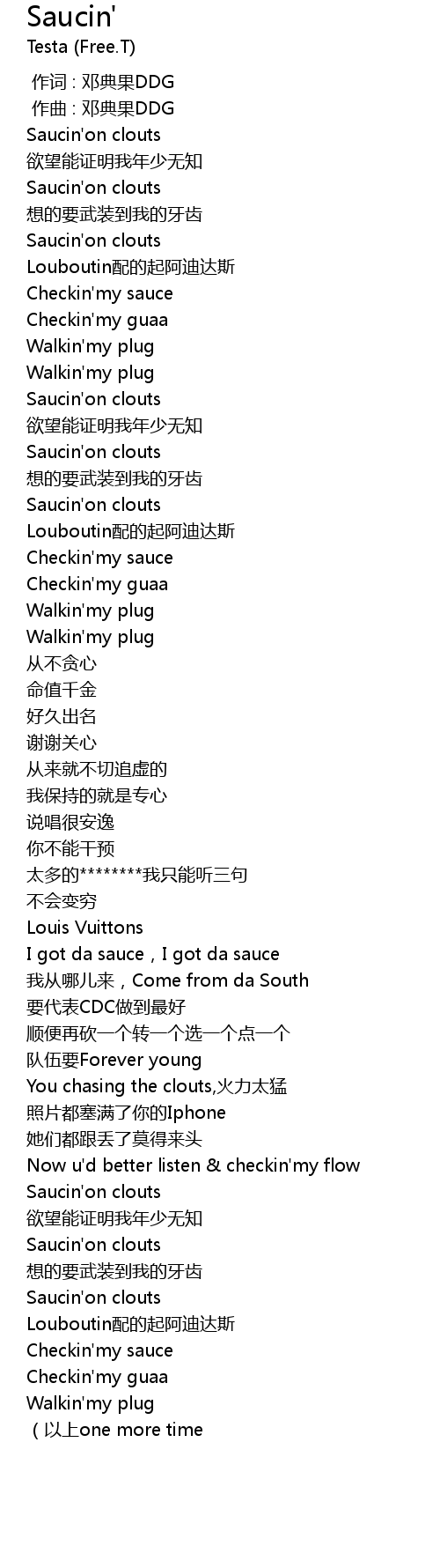 | [00:01.00] | zuò qǔ : dèng diǎn guǒ DDG |