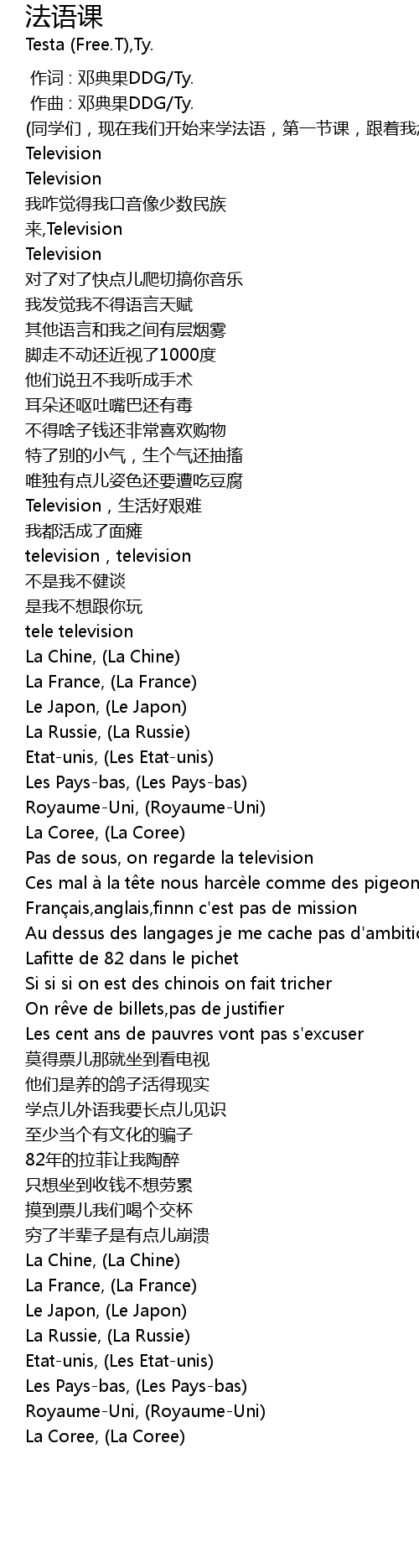 | [00:04.260] | tóng xué men, xiàn zài wǒ men kāi shǐ lái xué fǎ yǔ, dì yī jié kè, gēn zhe wǒ niàn |