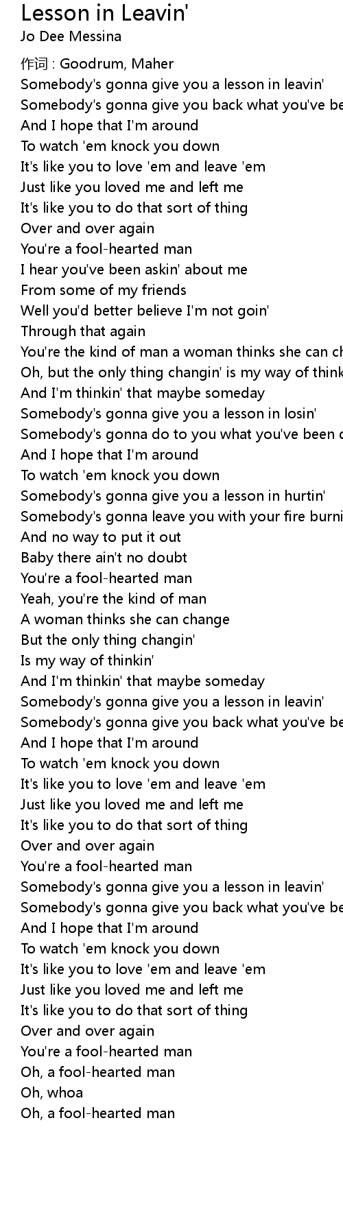 | 歌曲 | Lesson in Leavin' |