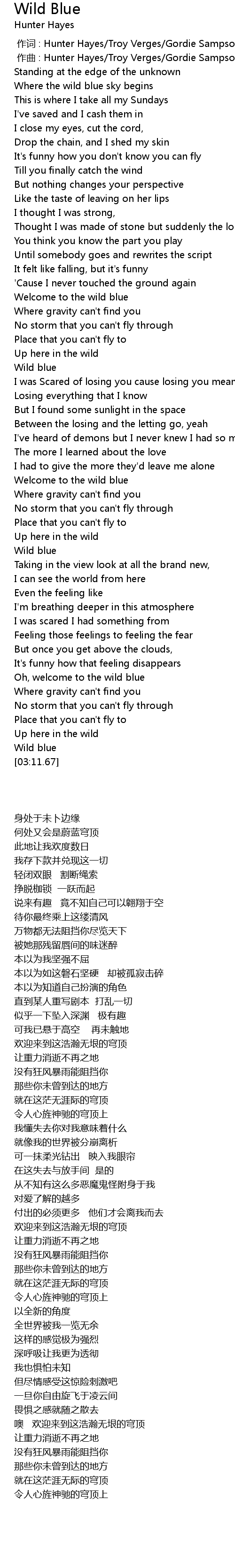 | [00:01.00] | 作曲 : Hunter Hayes/Troy Verges/Gordie Sampson |