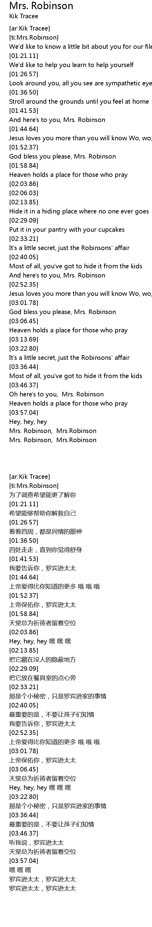 [ti:Mrs.Robinson] |