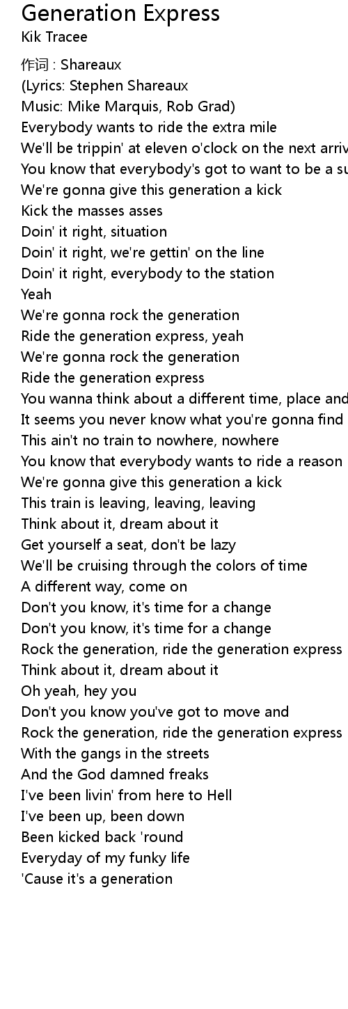 | Rock the generation, ride the generation express | |