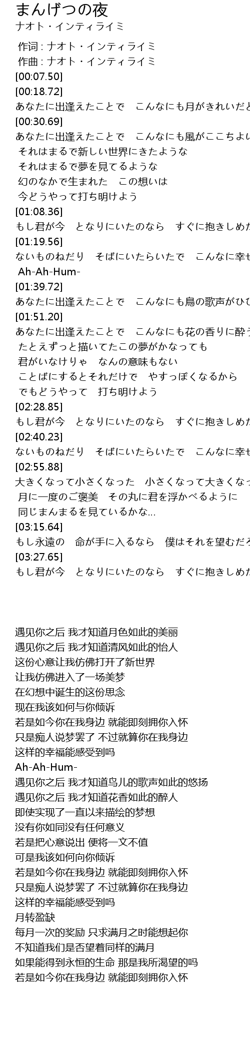 | [03:01.89] | 每月一次的奖励 只求满月之时能想起你 |