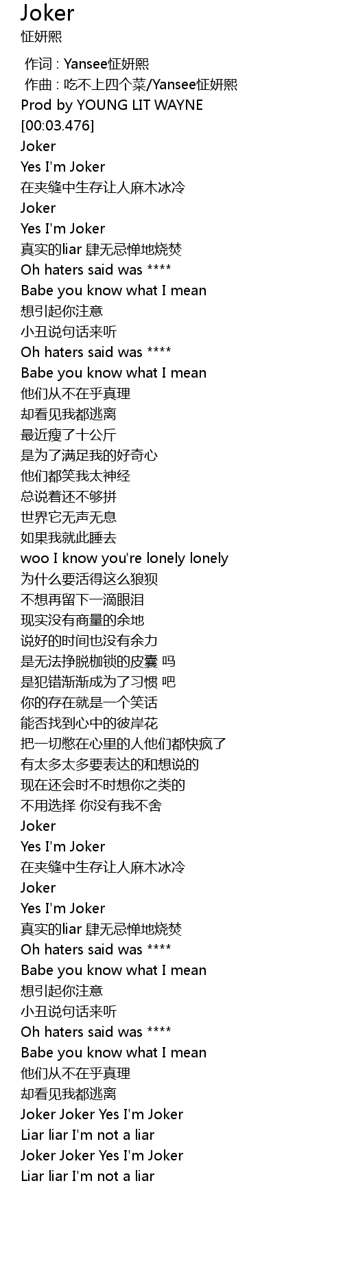 | [01:55.873] | Joker Joker Yes I' m Joker |