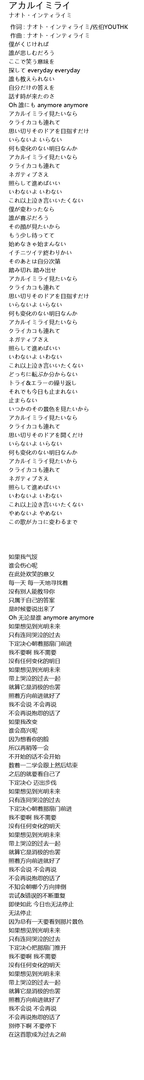 | 歌曲 | アカルイミライ |