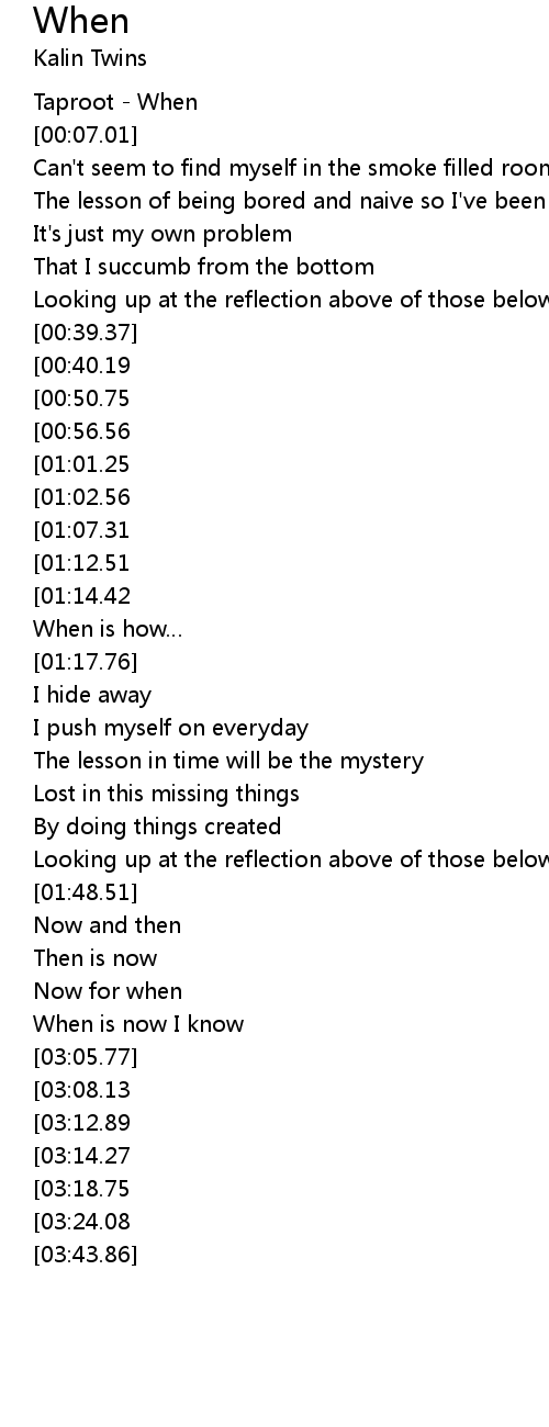 | [00:09.01] | Can't seem to find myself in the smoke filled room again |