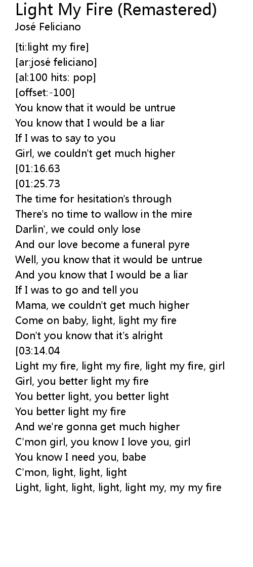 | [02:37.42] | Come on baby, light, light my fire |
